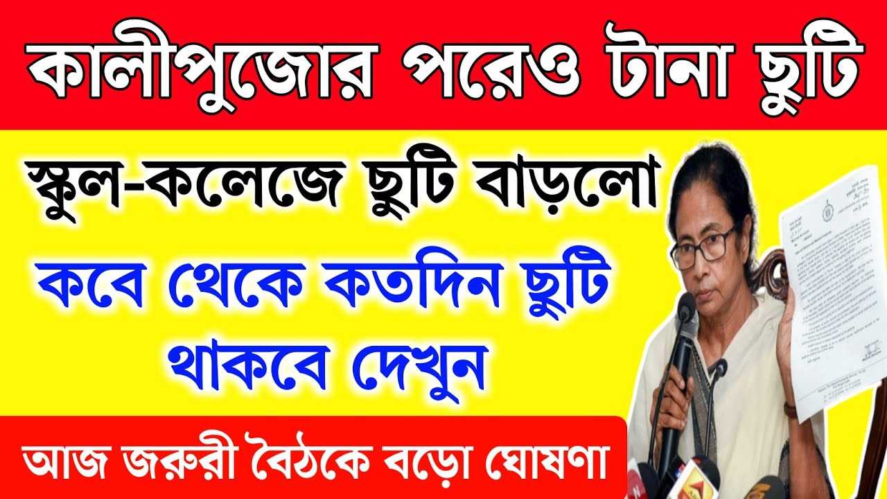 সব মিলিয়ে দেখতে গেলে কালী পুজো শেষে স্কুল কলেজ আবারো ছুটি(School Holidays) থাকবে। অফিসিয়াল নোটিফিকেশন পেতে অবশ্যই নিচের লিংকে ক্লিক করুন।