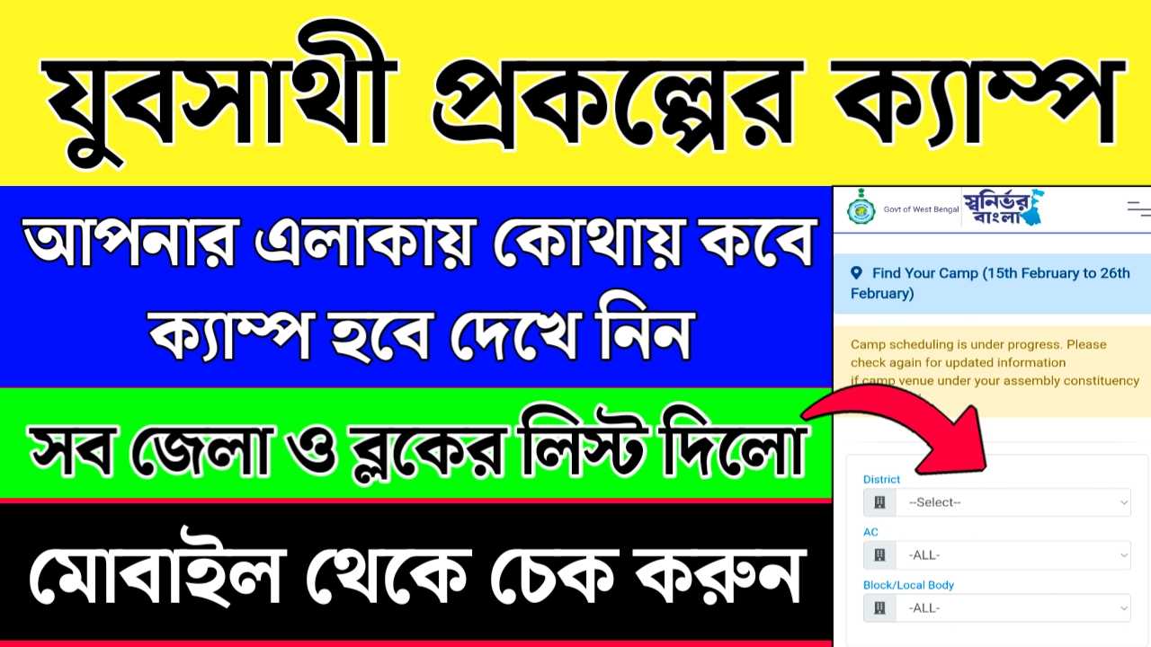স্থান: পশ্চিমবঙ্গের প্রতিটি বিধানসভা কেন্দ্রে এই বিশেষ ক্যাম্পের (Yuva Sathi Prakalpa Camp list) আয়োজন করা হবে। অর্থাৎ, রাজ্যে মোট ২৯৪টি বিধানসভা কেন্দ্রেই একটি করে নির্দিষ্ট ক্যাম্প বসবে। সাধারণত স্থানীয় বিডিও (BDO) অফিস, পুরসভা বা কোনো সরকারি স্কুল প্রাঙ্গণে এই ক্যাম্পগুলো হওয়ার কথা।